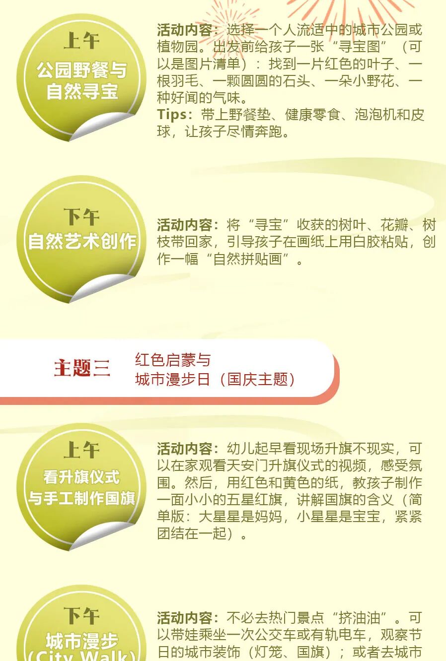 1. 节奏舒缓:避免行程过满,每天安排1-2个核心活动即可,预留充足的午休和自由玩耍时间。